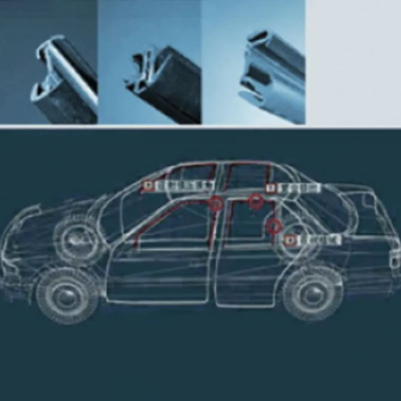 Уплотнитель направляющего паза стекла двери является уплотнителем, установленным на дверной раме, обычно состоящим из двух видов плотной резины — мягкой и твердой, материалом является EPDM плотная резина. Напыление ворса на губчатой кромке в разных направлениях — верхнем и нижнем — может снизить силу трения между стеклом и резиновой полосой при подъеме и опускании стекла, а также уменьшить шум и обеспечивать водонепроницаемость.